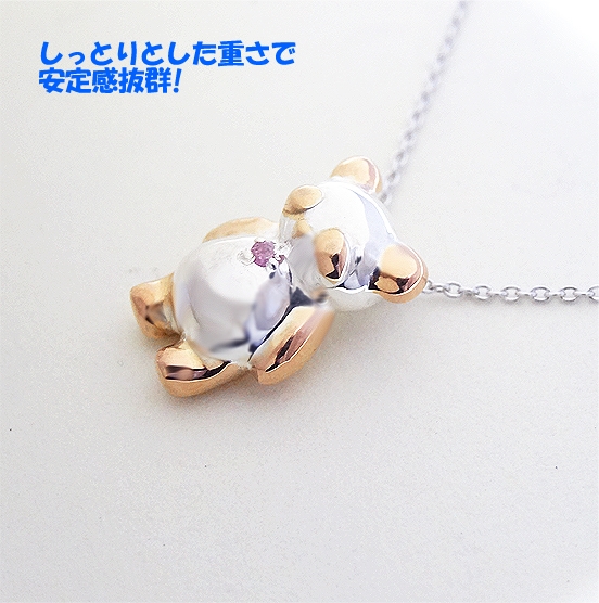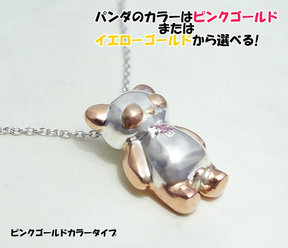 パンダの各部分には、ピンクゴールドメッキを施しており、お好みでイエローゴールドメッキにもご対応可能。