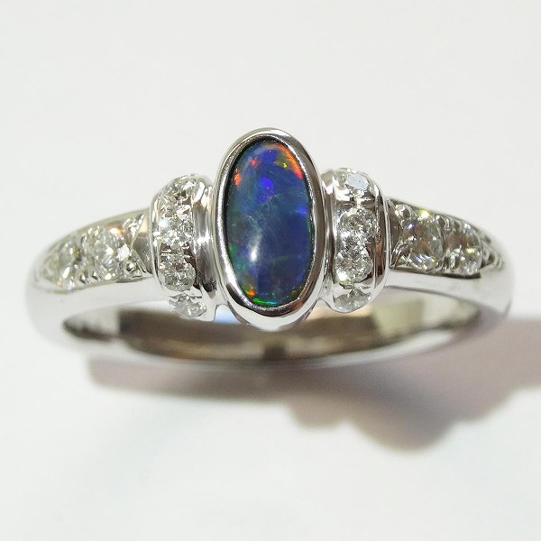 ブラックオパール リング 指輪 天然 ダイヤモンド プラチナ900 希少