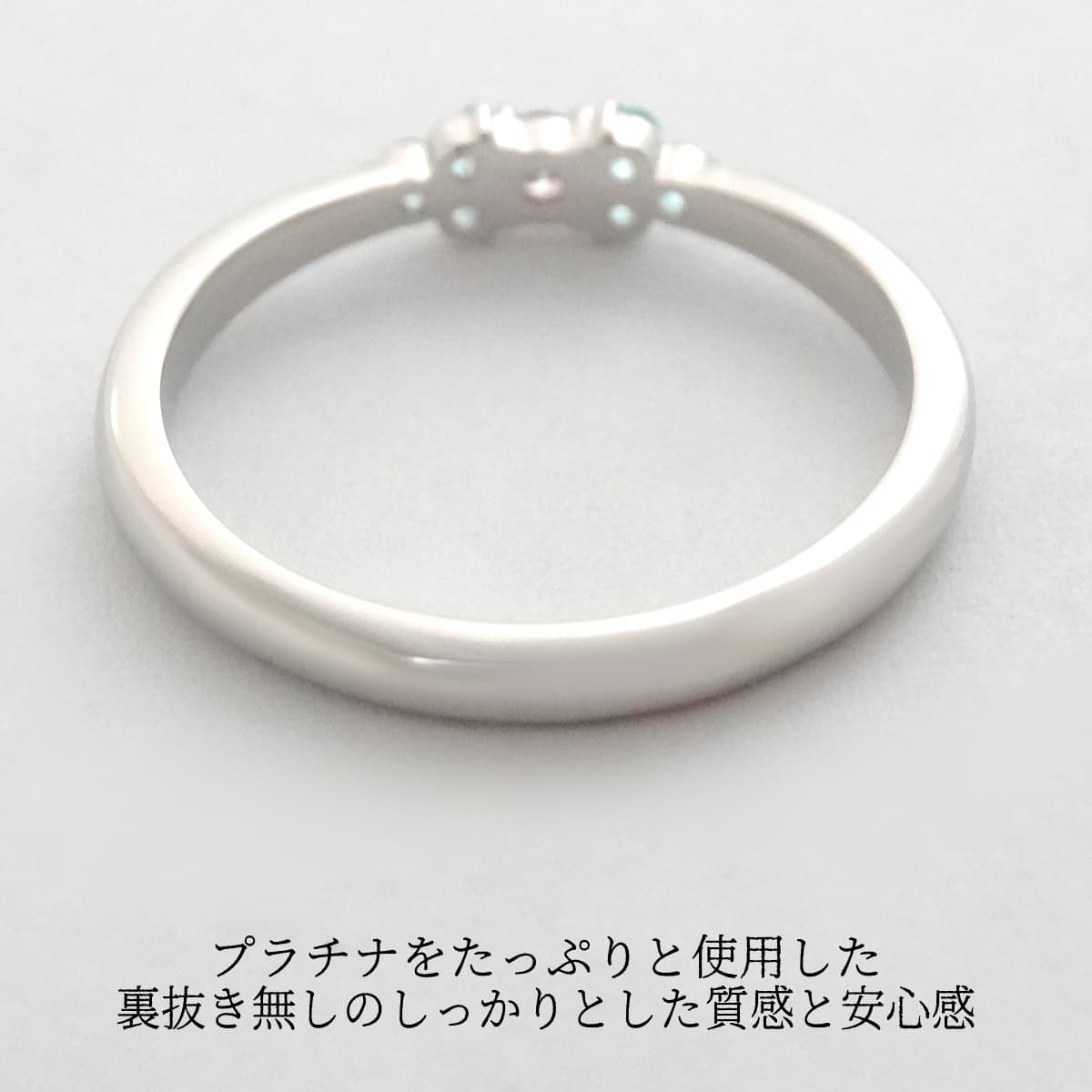指輪は裏抜き無しのしっとりとした質感と安心感。刻印もしっかりとお入れしました。