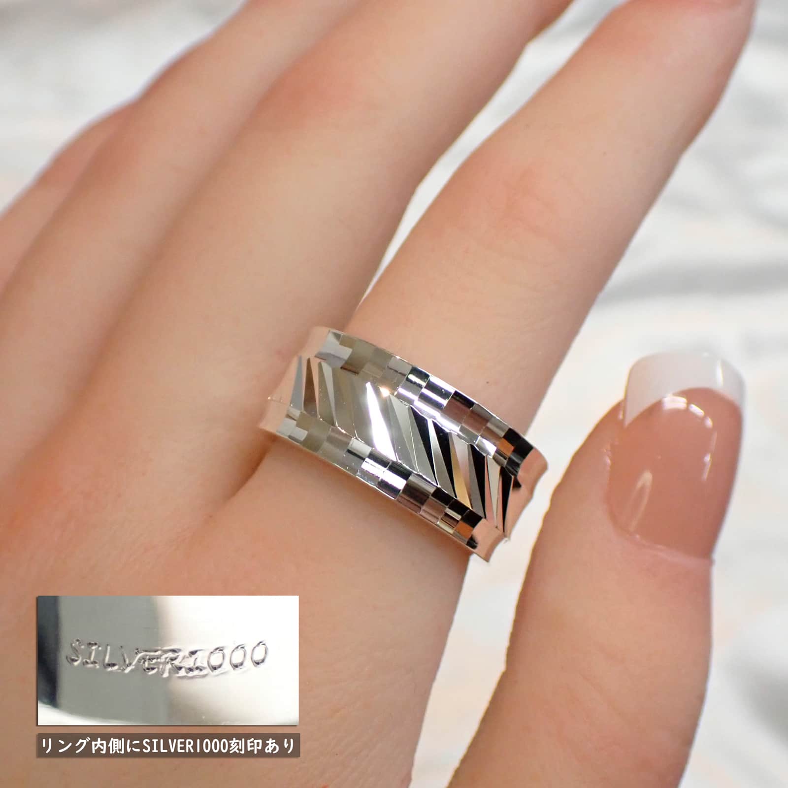 リング 指輪 レディース メンズ シルバー アクセサリー プレゼント シルバーリング SV1000 純銀 約10mm 幅広 ストリームカット